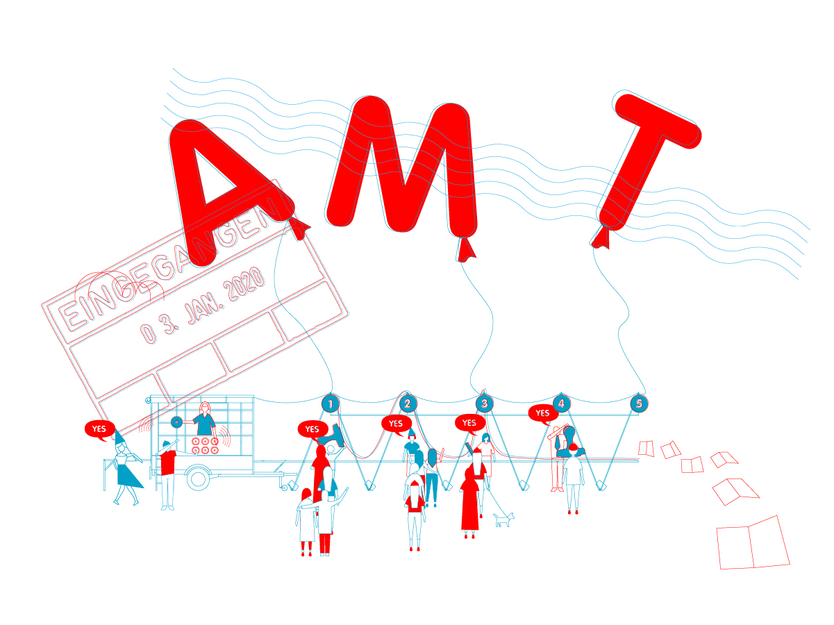 The Pop-Up office “AMT” invites us to participate in a performative group therapy to overcome our bureaucratically driven fears & frustrations. The reward will be an individually issued ArtSpin Pass.
