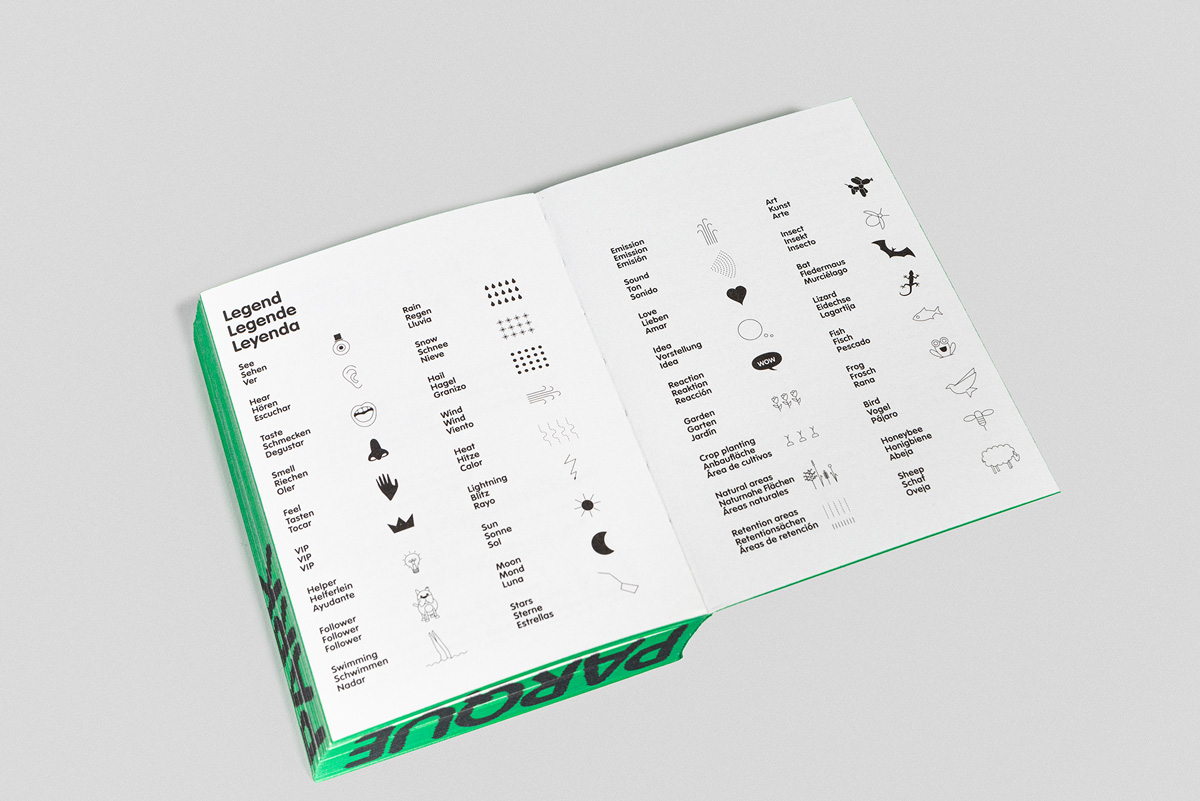 “Kiefer and Neubauer’s legend, a thirty-six-pictogram spread at the end of every volume, is a start to parallel Neurath and Arntz’s isotype visual language. However, the playfulness and diversity of the pictograms (many women, various races and non-humans) in the two ladies’ contemporary work stands in stark contrast to the more mechanical and dominantly male components of the interwar works of the men.” Kelly Shanon in Journal of Landscape Architecture