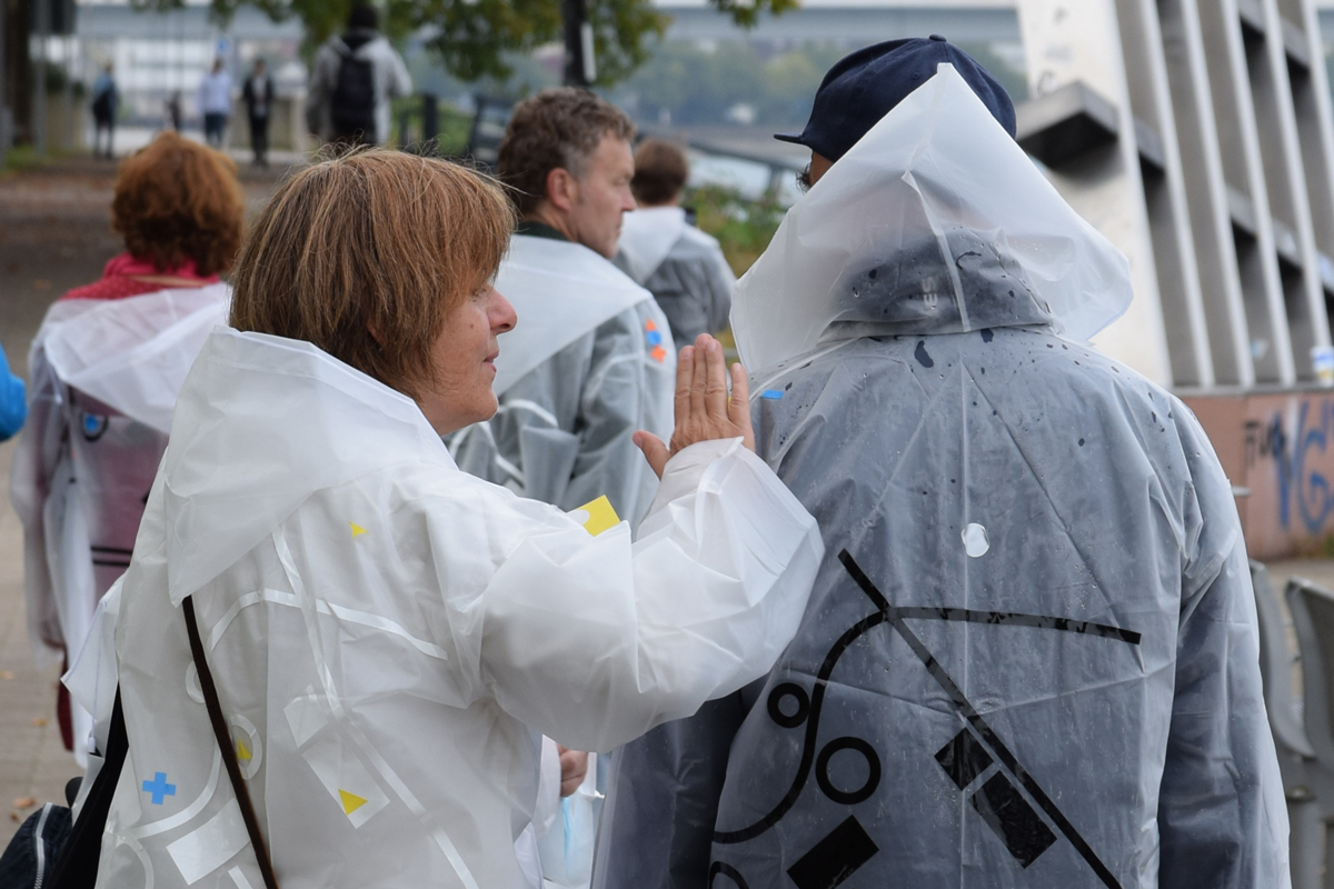 The barrier-free functionality allows all participants to create their own personal, individual plan. It promotes exchange between visitors about places in the city. When the coat is worn on the next tour, the map can be updated by new visitors. This is how a collective, MOVING MAP of Ludwigshafen is created.