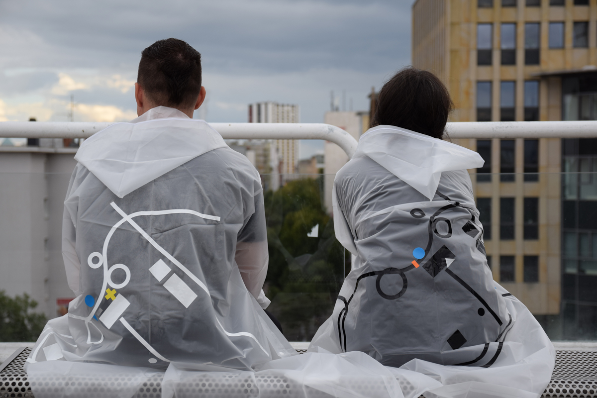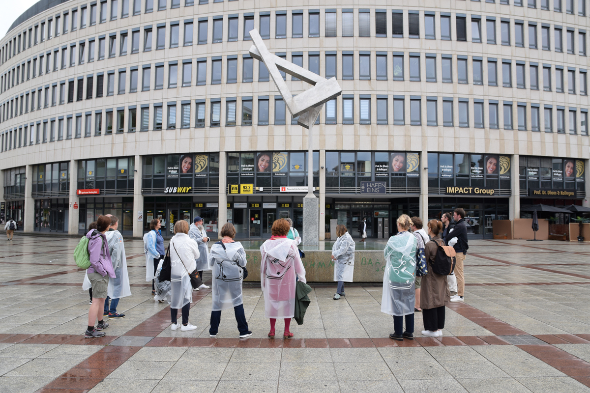 Visitors on guided tours are invited to wear it. Using the stickers, participants can map out on another person’s back which places they find interesting, inspiring, in need of improvement or even shocking.